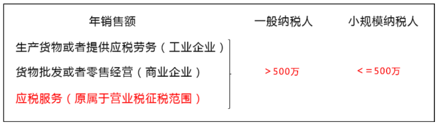 而小规模纳税人,直接对应的概念就是“一般纳税人”了。它最重要的划分指标在于:企业的年应税销售额是否超过了500万。